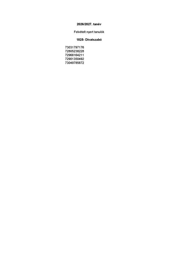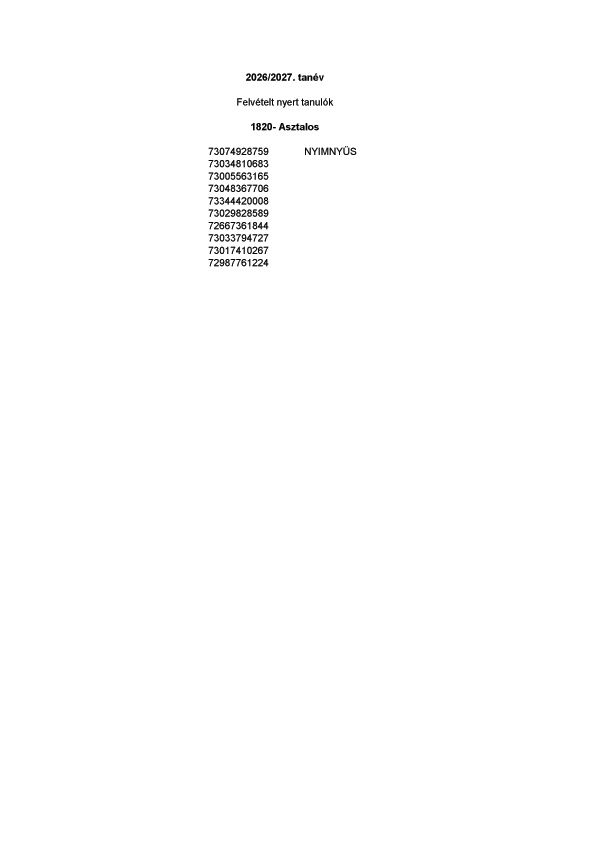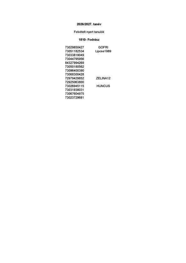 Végleges felvételi jegyzék 2026/27. tanév